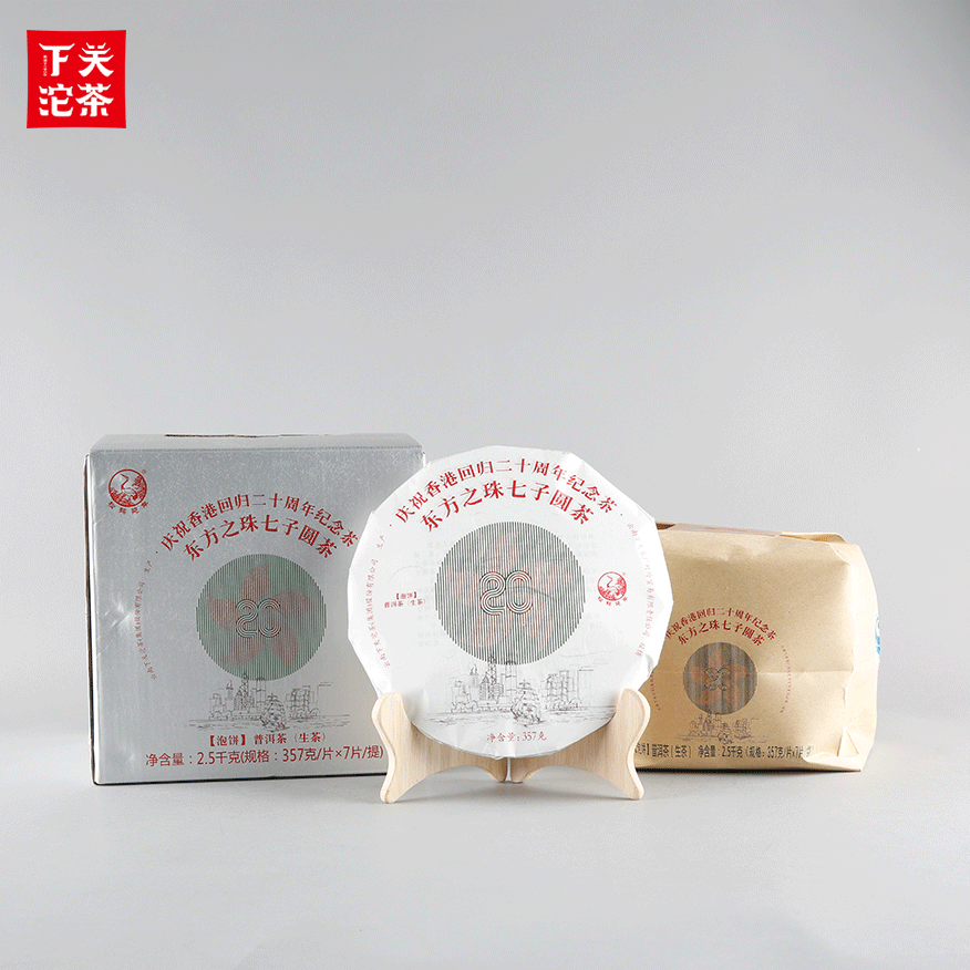 357克紙袋提盒裝東方之珠七子圓茶 普洱茶(生茶)2017