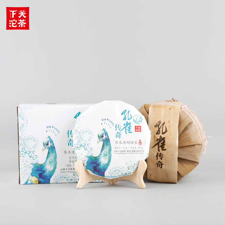 357克筍葉提盒裝孔雀傳奇 喬木老樹餅茶 普洱茶(生茶)2017