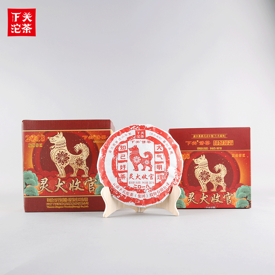357克單盒提盒裝靈犬收官下關餅茶 普洱茶(生茶)2017