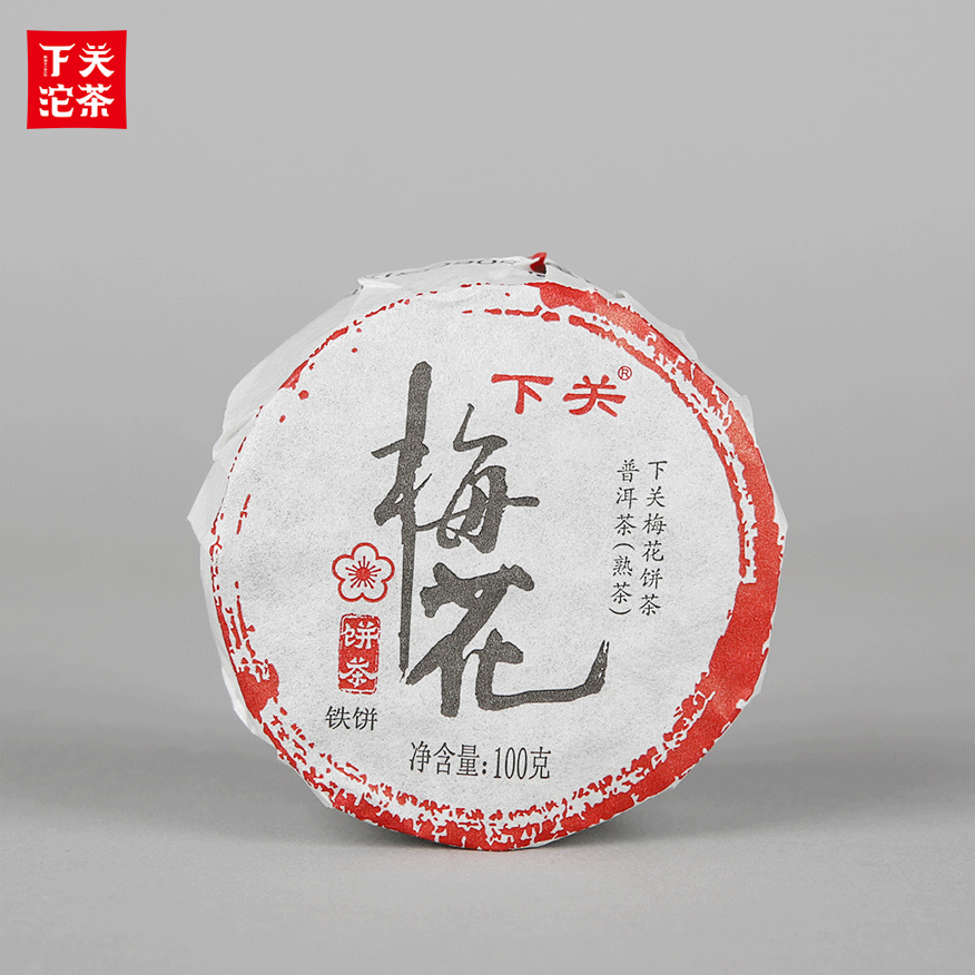 100克筍葉裝下關梅花餅茶(鐵餅) 普洱茶(熟茶)2017