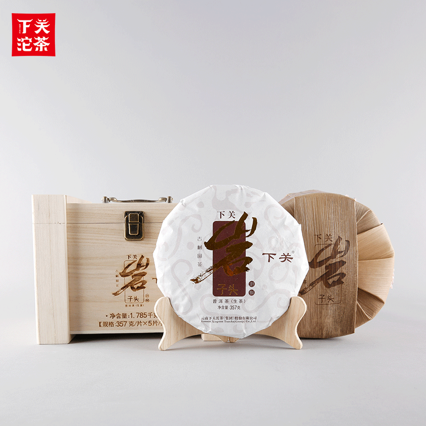 357克筍葉木盒裝下關巖子頭古樹圓茶 普洱茶(生茶)2018