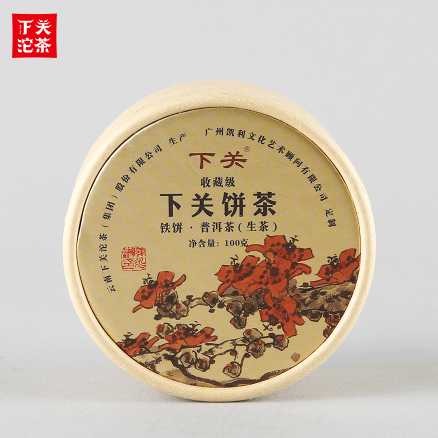 100克圓盒裝下關餅茶(鐵餅)普洱茶(生茶)2018
