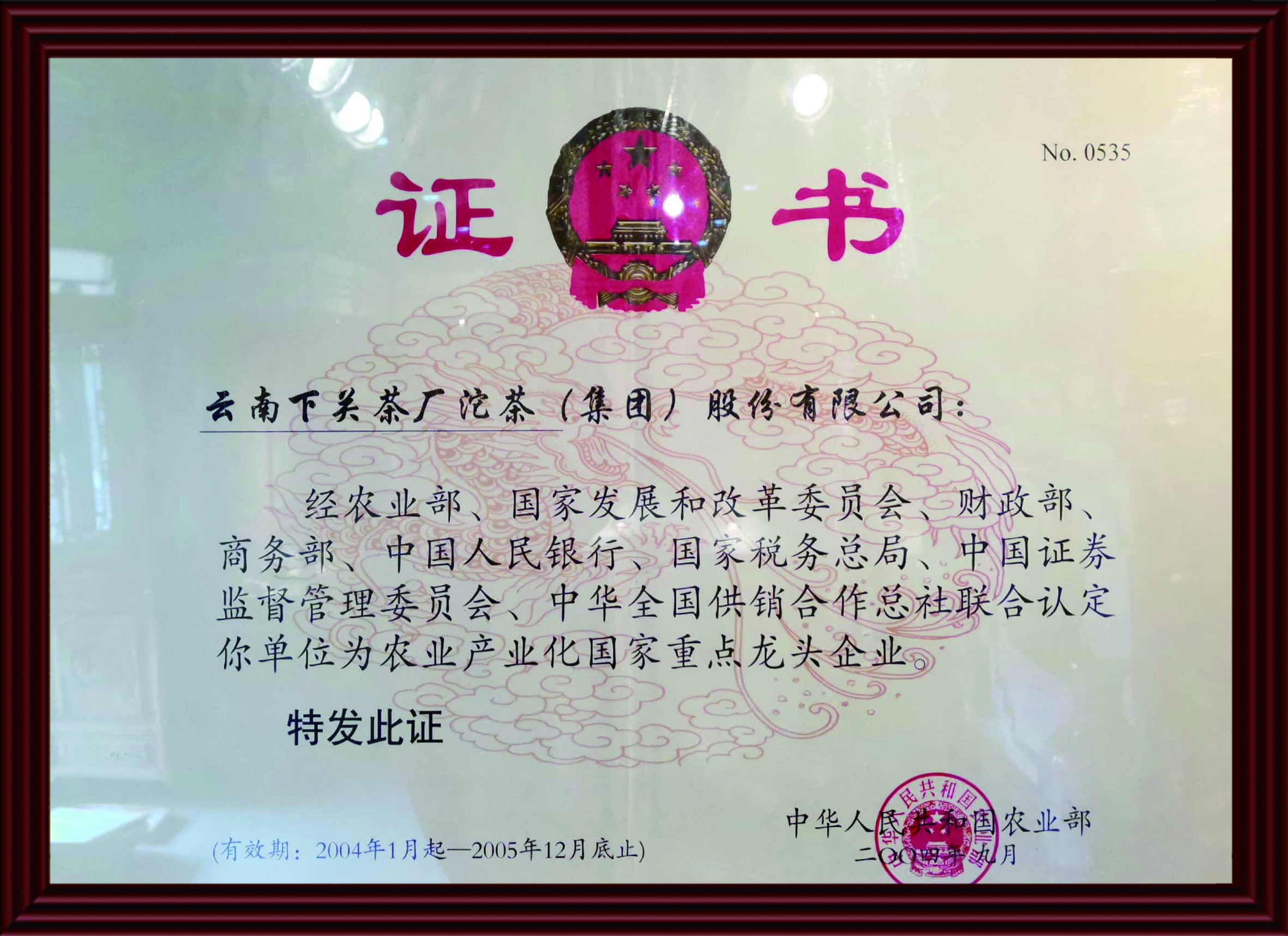 2004年9月 農(nóng)業(yè)產(chǎn)業(yè)化國家重點(diǎn)龍頭企業(yè) 國家農(nóng)業(yè)部