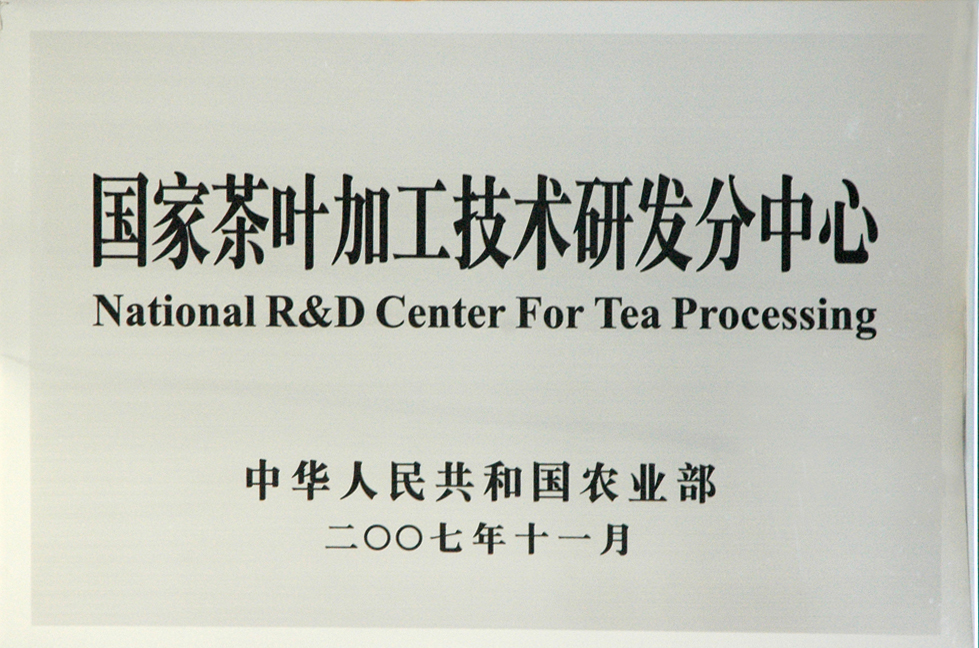 2007年11月國家茶葉加工技術(shù)研發(fā)分中心證書