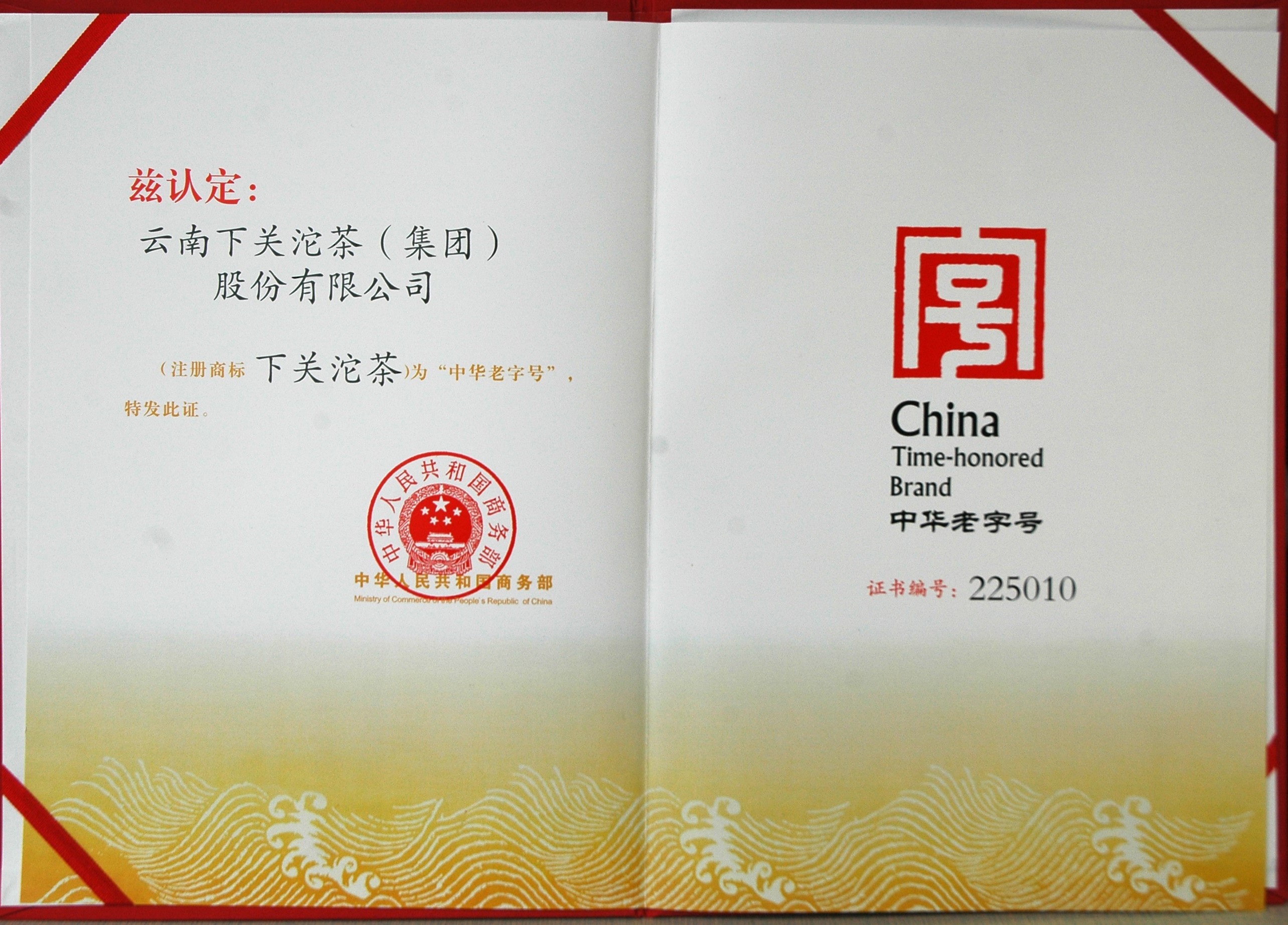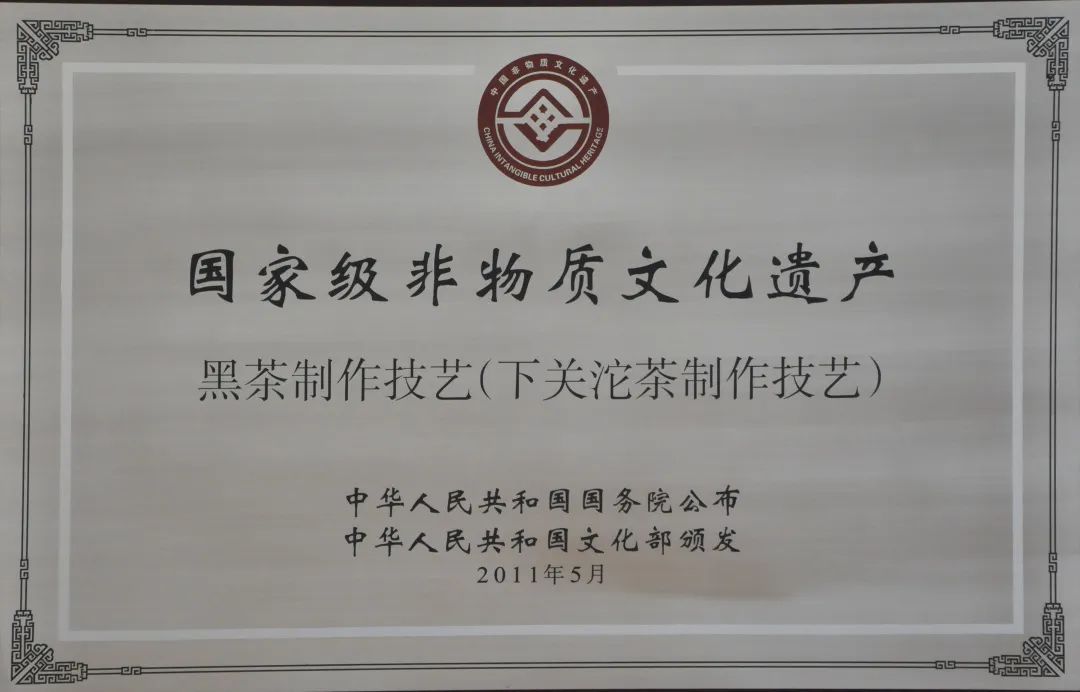 2011年5月,下關(guān)沱茶--國家級(jí)非遺牌匾