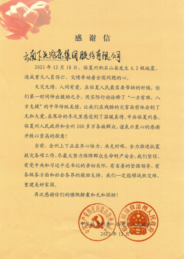 天災無情,茶暖人間。云南下關沱茶(集團)股份有限公司作為全國民族特需商品(邊銷茶)定點生產企業和國家邊銷茶原料儲備企業與甘肅省同胞手足情深。祝愿災區同胞早日恢復重建,下關沱茶盡一份綿薄之力,與災區同胞共克時艱。
