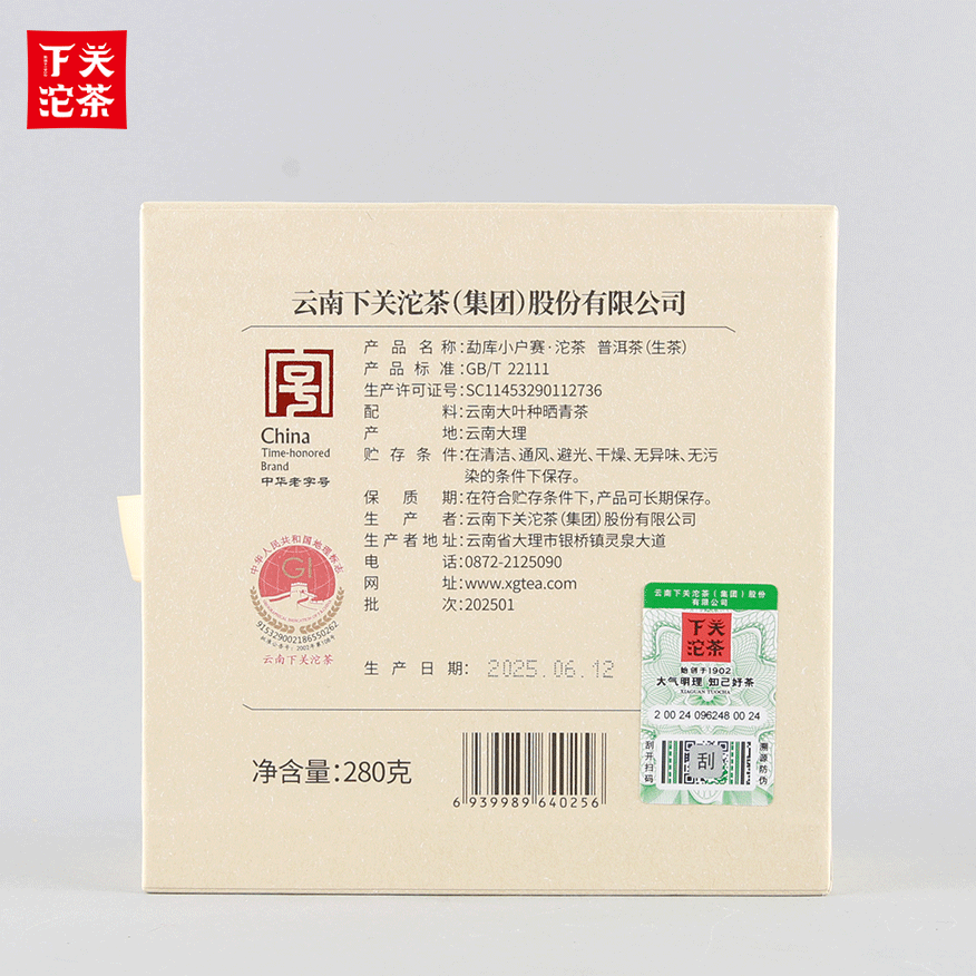 280克單盒裝勐庫小戶賽·沱茶 普洱茶(生茶)2025