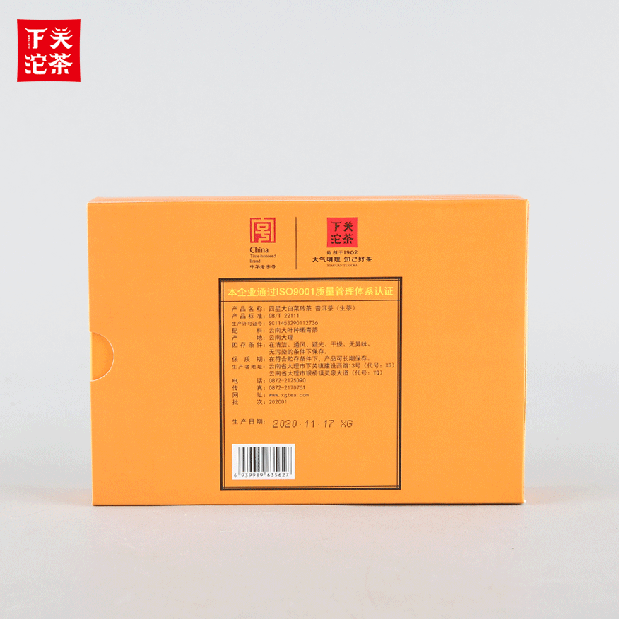 250克單盒裝四星大白菜磚茶 普洱茶(生茶)2020